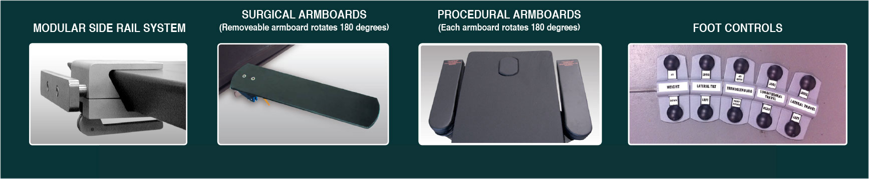 The MAX series imaging tables are a cantilevered (diving board) style design with bellows. The “H” style base allows maximum C-Arm clearance along the entire cantilevered length.